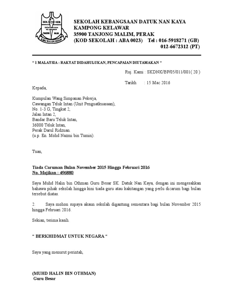 Contoh Surat Kepada Kwsp By Vi_Gisselle556 15 Jun, 2022 Post a Comment Surat Pengesahan Majikan Kwsp Letter 7saudara Com Surat Bertulis Laporan Kesilapan Caruman Kwsp Pdf Surat Rasmi Untuk Kwsp Berotoh Otosection Contoh Surat Rasmi Kepada Kwsp Hanssqw Surat Kwsp Gantung Akaun Tiada Caruman Pdf Share No comments for "Contoh Surat Kepada Kwsp"